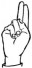 На ћирилици написано БЛАЖА КРИВЧЕВИЋ састоји се из 14 слова [?]. Исписано ћириличном једноручном азбуком за глувонеме: